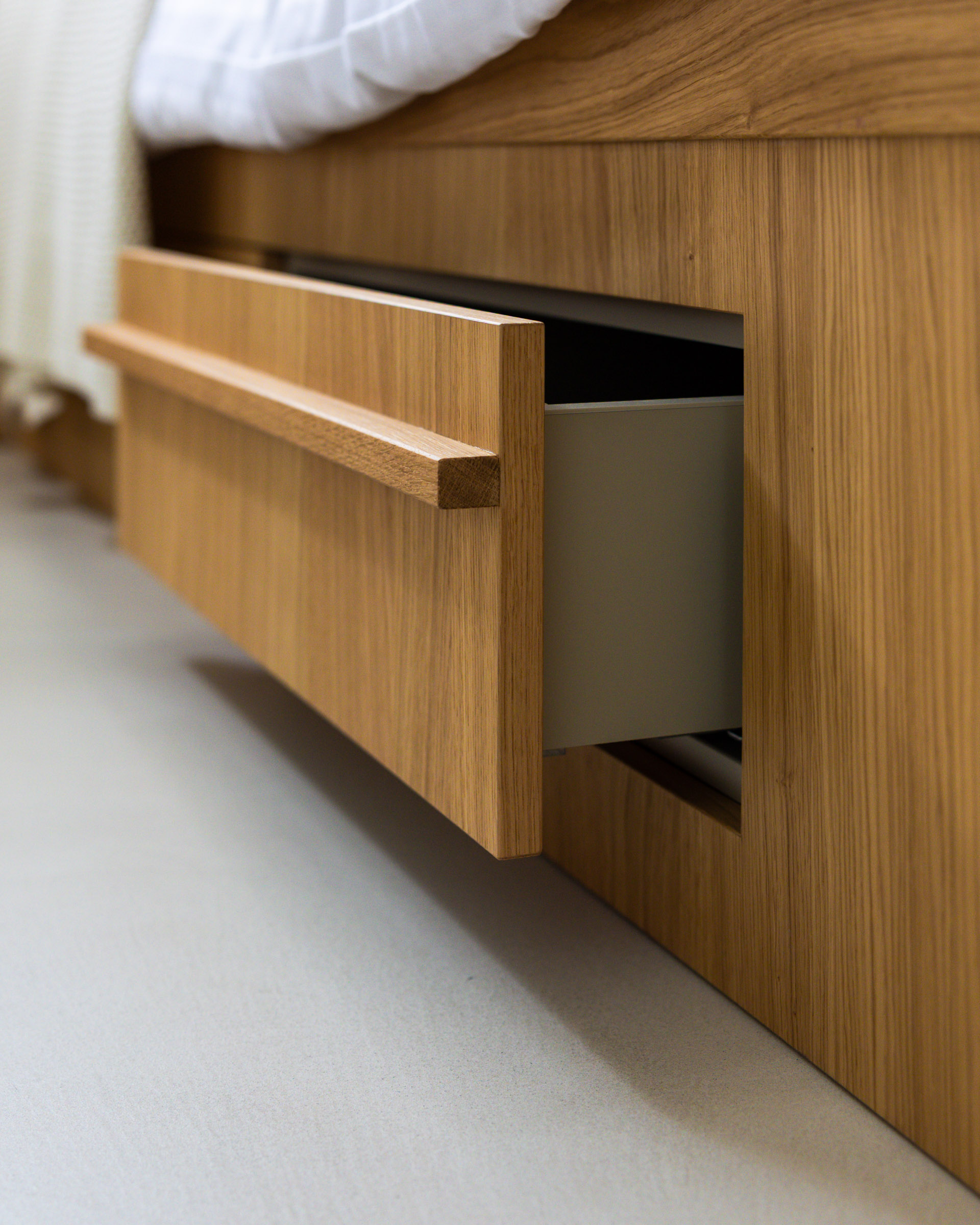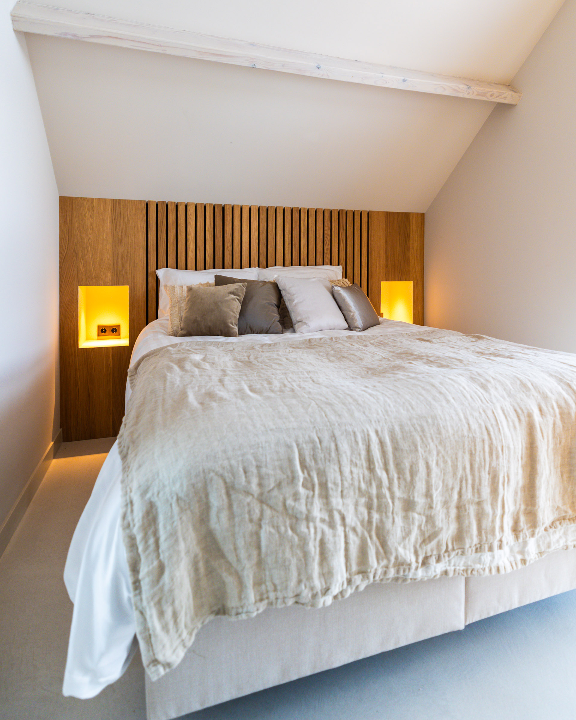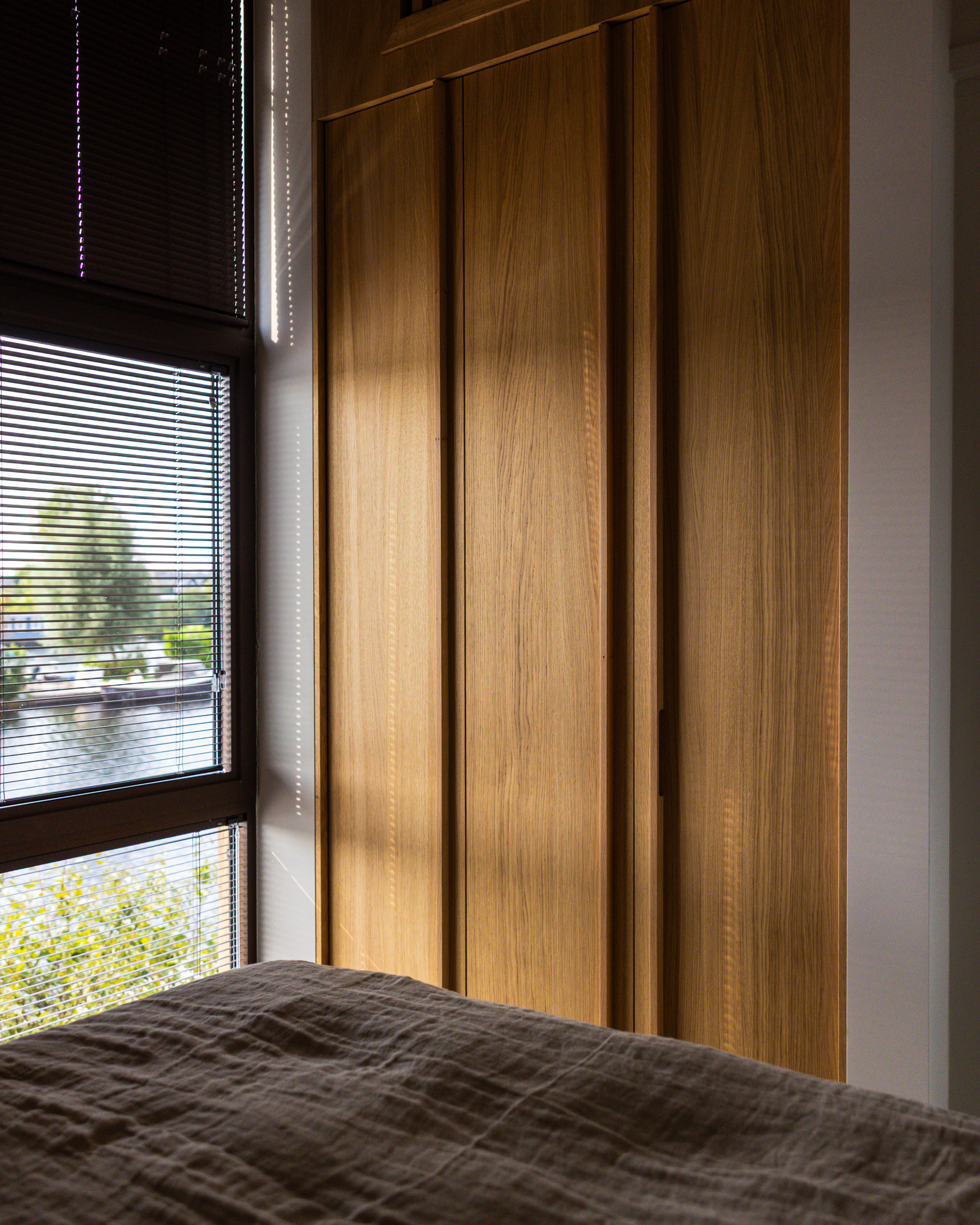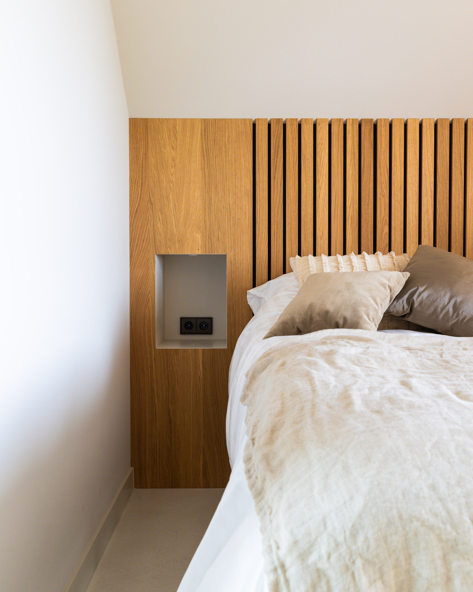 Hier hebben we een functioneel én stijlvol ontwerp gerealiseerd: Bedden met slimme opbergruimte: Praktisch én mooi, met geïntegreerde lades om al je spullen netjes op te bergen. Op maat gemaakte kasten: Voor optimaal gebruik van de beschikbare ruimte, en passend bij de stijl van de woning. Nisjes met geïntegreerde verlichting: Voor een sfeervolle uitstraling en gebruiksgemak.