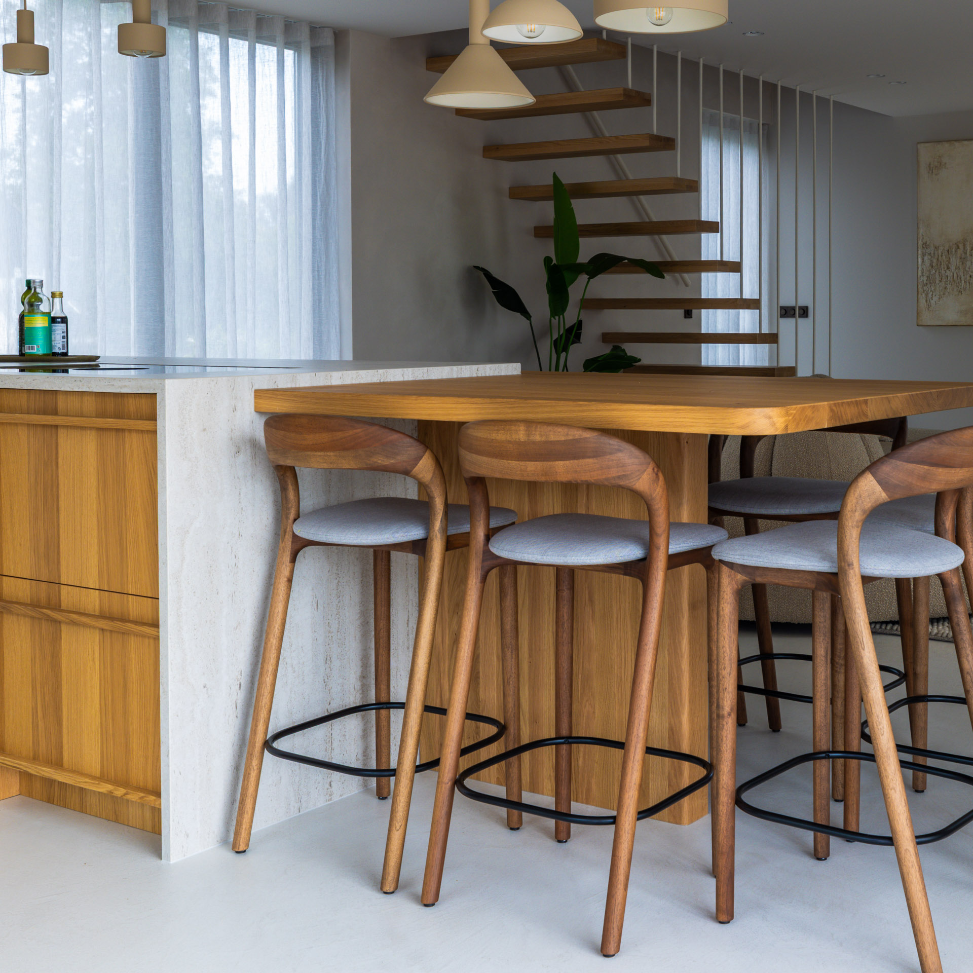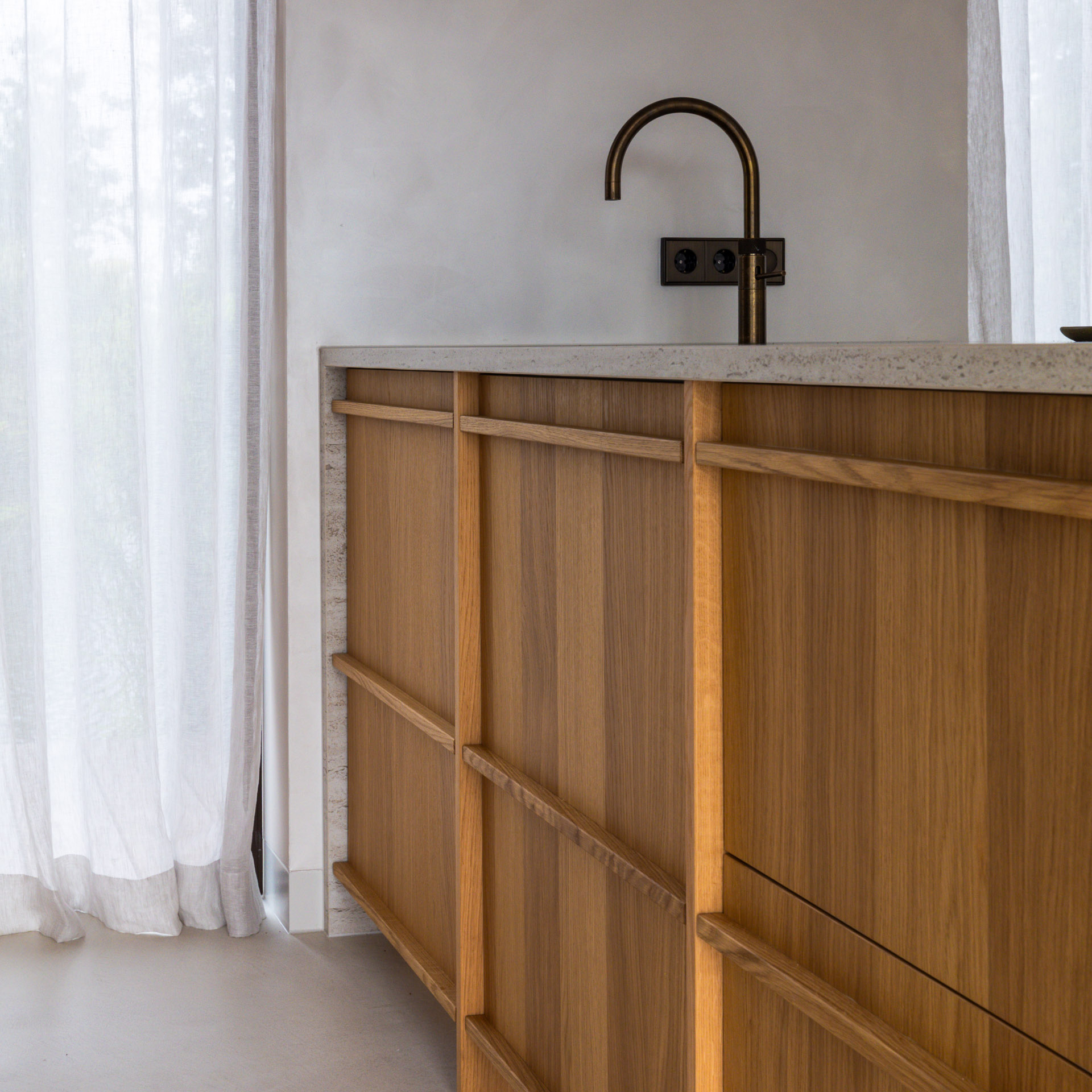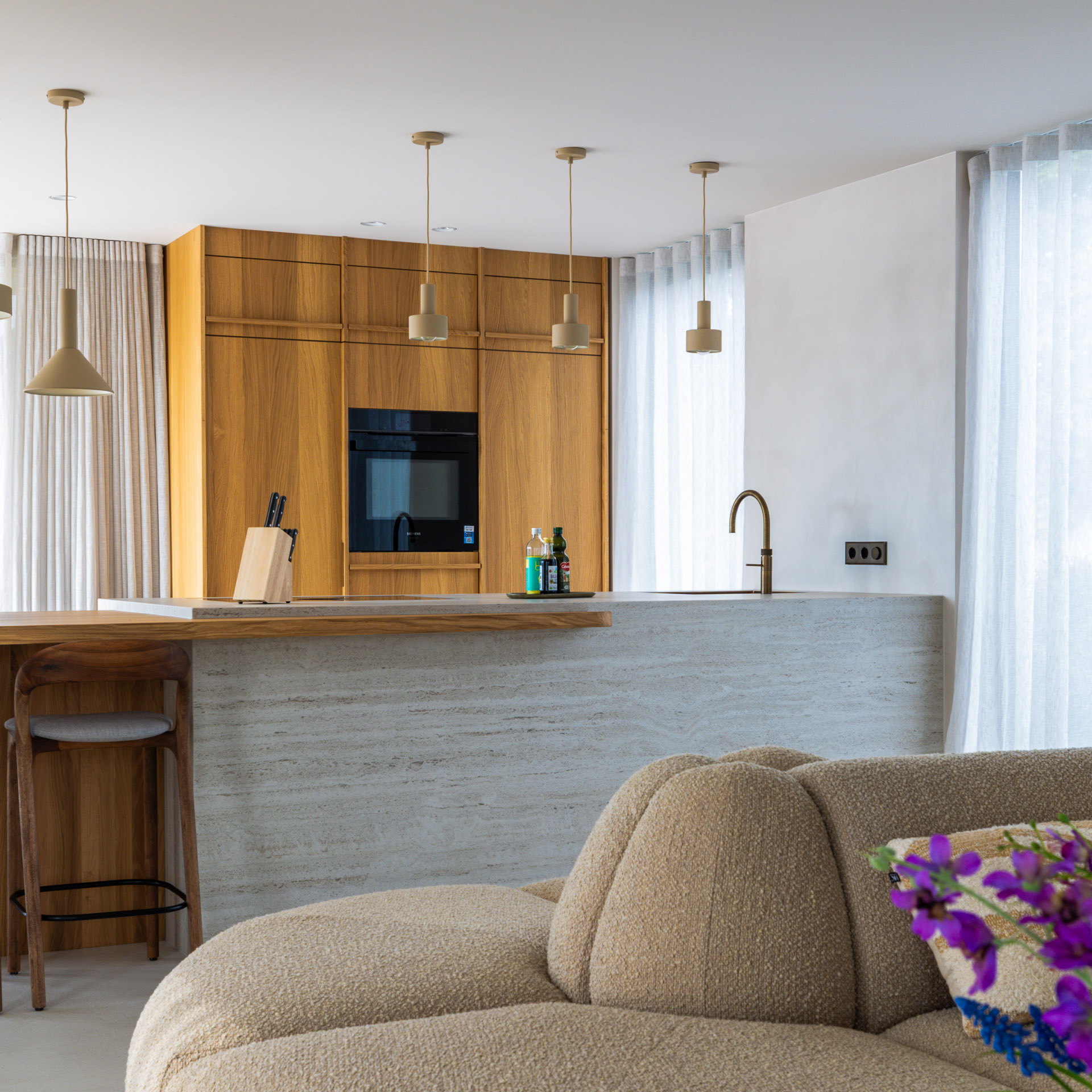 Deze keuken brengt het beste van twee werelden samen: minimalistisch Japans design en de warme gezelligheid van Scandinavische invloeden. Met strakke lijnen, natuurlijke materialen en een rustig kleurenpalet straalt deze keuken rust en eenvoud uit. Elk detail is zorgvuldig ontworpen en door ons op maat gemaakt om zowel functionaliteit als esthetiek te bieden in deze recreatiewoning op de Vinkeveense Plassen.
