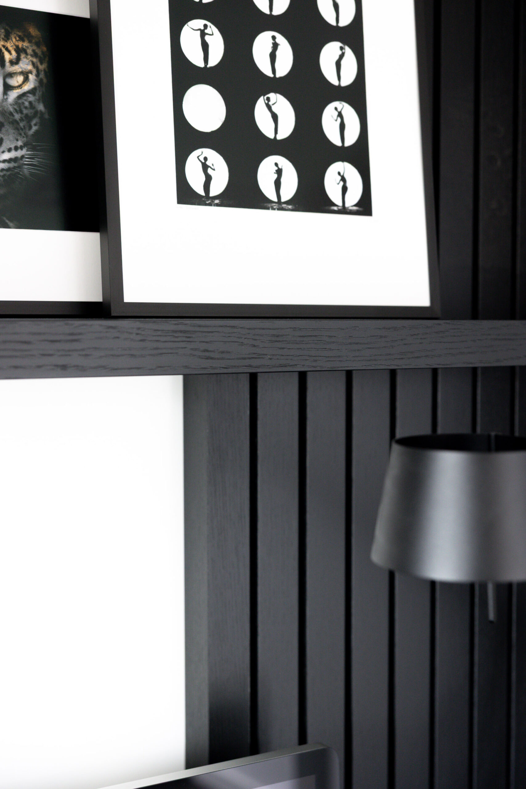 Dit meubel is gemaakt van zwart gebeitst eiken voor een tijdloze en luxe uitstraling. Het heeft een elegante lattenwand voor een moderne touch en laden in verstek voor een naadloze afwerking. De witte onderkast met push to open systeem zorgt voor een strak design en het zwevend bureau benut de ruimte optimaal. Bij het ontwerp is slim omgegaan met de ruimte, waardoor het raam onderdeel is geworden van het meubel.